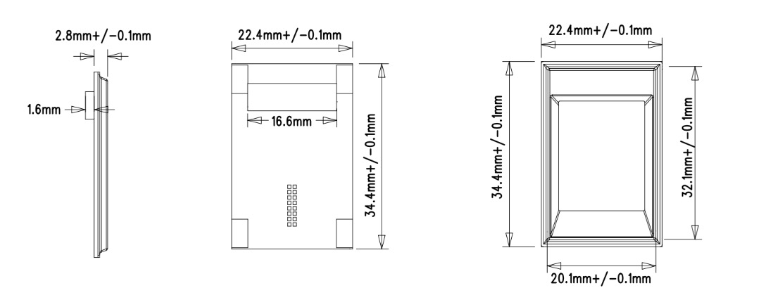 Module size(Two options are available) | 34.4x22.4x4.4mm(The frame size is compatible with FAP10) /38.5x26.0x2.8mm | |